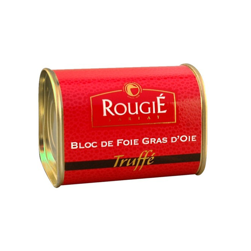 Exquisito bloque de foie gras elaborado con la mezcla de hígado graso de ganso y trufas, servido en las mesas con más altos estándares culinarios . Es una de las especialidades de Rougié, realizada de forma tradicional y natural en la región Sud-oest y los Pays de la Loire en Francia. Sabor contrastante por estar finamente sazonado y revela trozos de trufas en su corazón. Este bloque de foie gras garantiza un mínimo de 3% de trufas (Tuber Mélanosporum). Ideal para aperitivos, para disfrutarlo en trozos o servido en rebanadas de baguette en eventos y diferentes celebraciones.