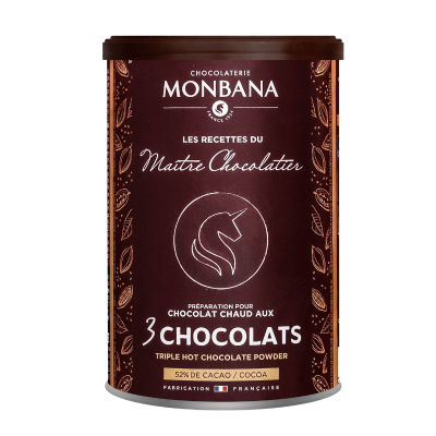 Chocolate caliente en polvo Monbana 3 Chocolats 52% cacao – 175 gr