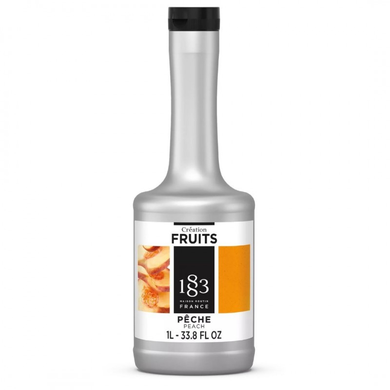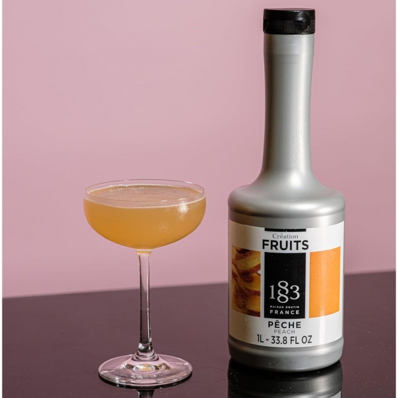 Cada botella de CRÉATION FRUITS® 1883 representa la excelencia francesa en la elaboración de purés de frutas, capturando meticulosamente todos los matices que hacen único al melocotón en su punto óptimo de maduración.