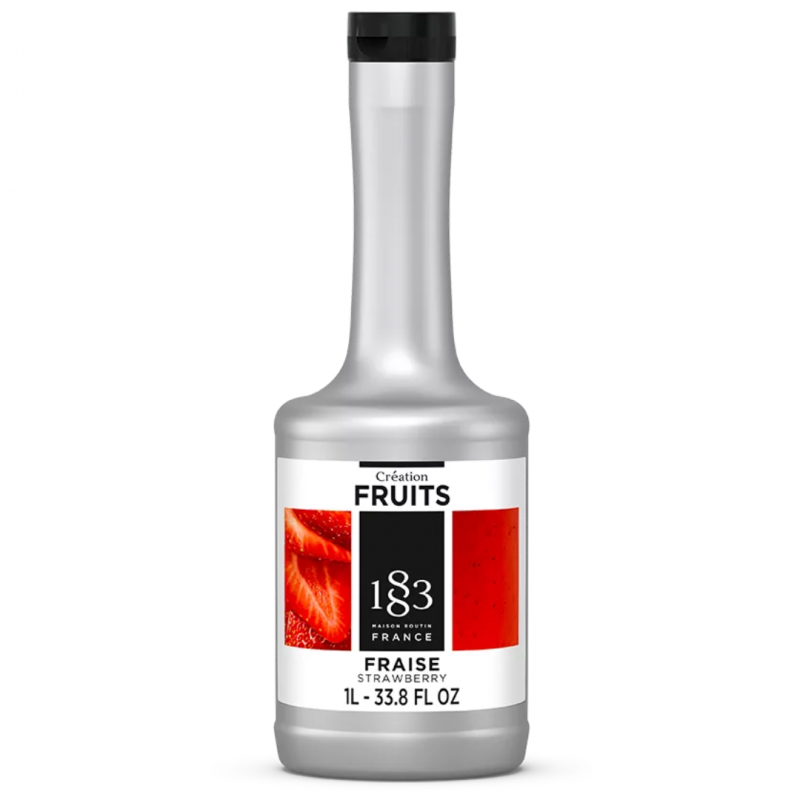 Cada botella de CRÉATION FRUITS® 1883 refleja la excelencia francesa en la elaboración de purés frutales, capturando meticulosamente todos los matices que hacen única a la fresa, desde su brillante frescura hasta su dulzura natural característica.