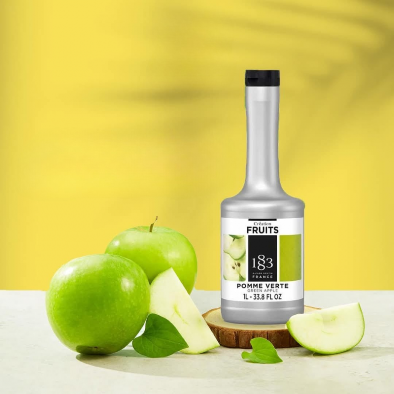Cada botella de CRÉATION FRUITS® 1883 refleja el compromiso francés con la excelencia, capturando meticulosamente todos los matices que hacen única a la manzana verde en un puré de calidad profesional.