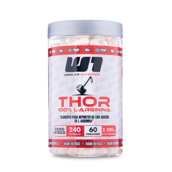 Arginina Thor 240 cáps. 60 porciones es un suplemento hecho en base a sólo un aminoácido, la L-Arginina. Este aminoácido tiene como función principal ser precursor del Óxido Nítrico, sustancia que está encargada de actuar como vasodilatador en el organismo.
