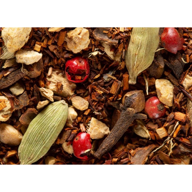 Al estilo de un chai, este rooibos se asocia con un ramo de especias. La suavidad natural del rooibos se combina muy bien con los sabores amaderados, picantes y florales de las especias para crear una taza aterciopelada y deliciosamente perfumada.